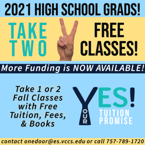 Email onedoor@es.vccs.edu or call 757-789-1720 if you are interested or if you have any questions.