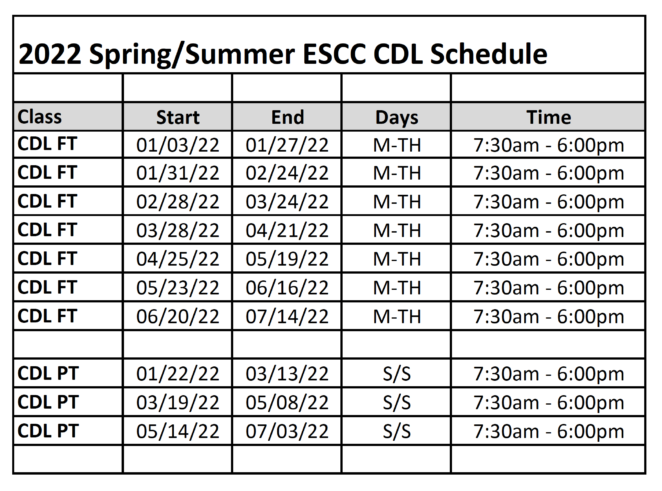 ESCC runs CDL classes every month. Students can attend full-time or part-time and complete the program in as little as four weeks.