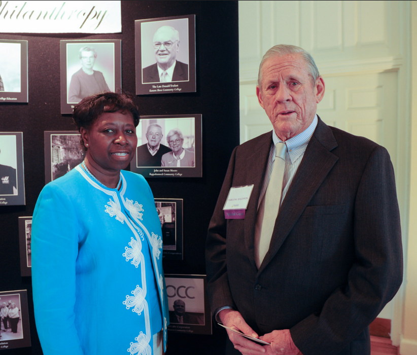 “Furlong Badwin Sr. accepting the honors for his longtime friend Donald Trufant, pictured here with ESCC President, Dr. Linda Thomas-Glover in Richmond.”